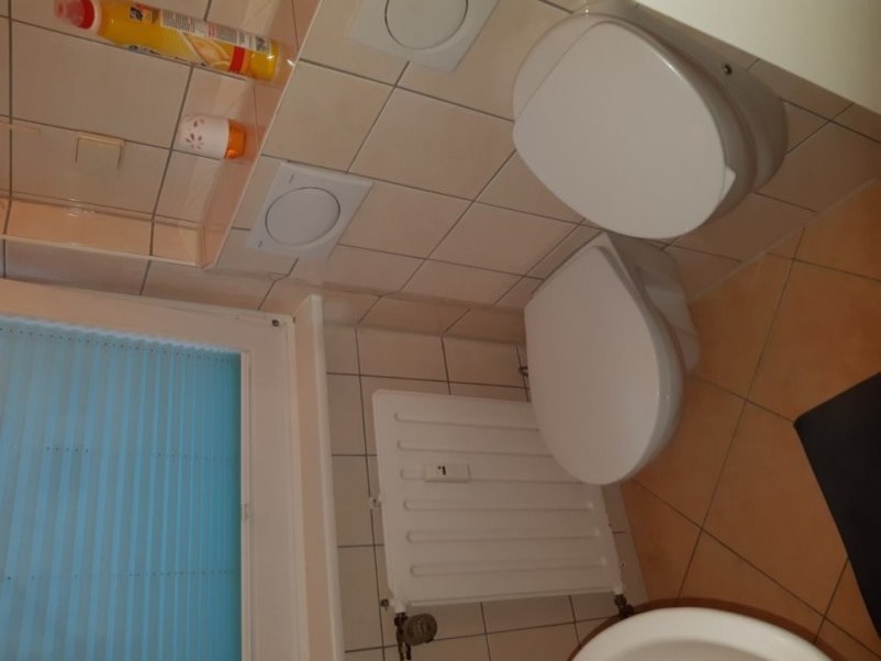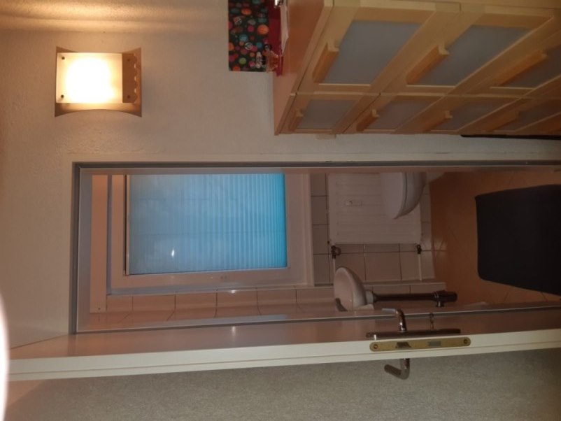 Wohnungstür erneuert in 2008: (zum Teil rechts zu sehen) - mit 3-fach-Verriegelung - Aufbohrschutz am Schließzylinder - Türblattverstärkung durch Stahlblech Gerade hin Toilettentür, links Badtür, links auch noch Flur |