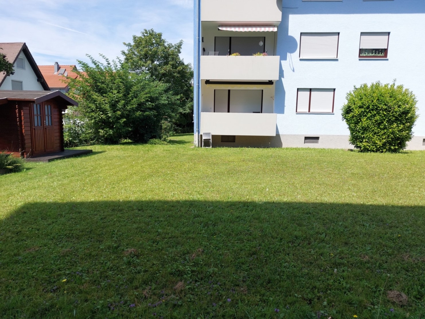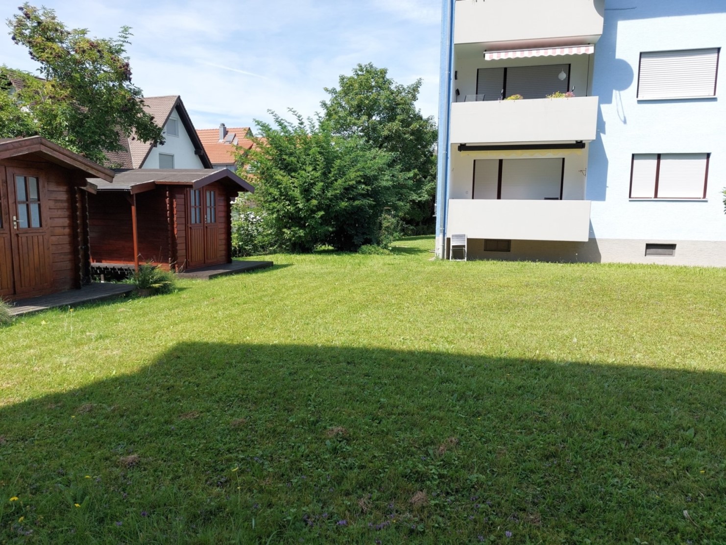 Links ist das zur Wohnung gehörende Gartenhaus zu sehen. | |